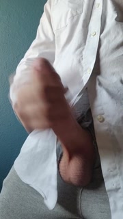 Too horny to get ready for work. I take my Big cock out and cum for you instead.
