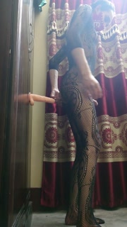 Sissy slut trains her anal pussy.