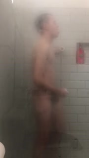 19 year old Jesse Gold pumps out a load while taking a shower