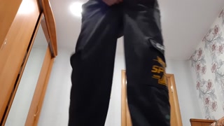 Chav lad jerks off a big cock in sweatpants and black sneakers