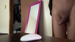 Femboy jerking off and cums on shirt