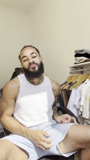 Hot tattoed brazilian jerk off big black cock
