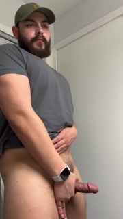 Beefcake strips, spits, and strokes thick cock before moaning cumshot