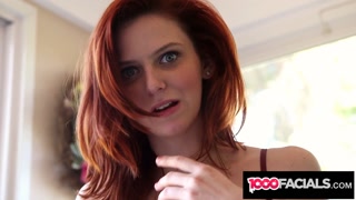 1000Facials - Horny Small Tittied Redhead Fits A Whole Cock In Her Mouth
