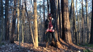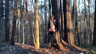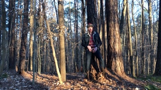 19 year old Jesse Gold jerks off in the woods in cowboy boots, denim, and flannel