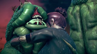 3d animation - astronaut arrive on a frog monsters planet