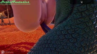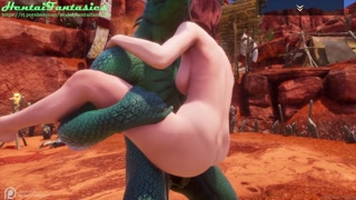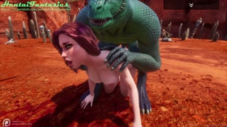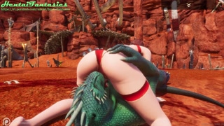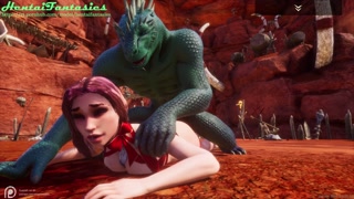 3d hentai uncensored | The lizard with two dicks fucks a beauty with double penetration