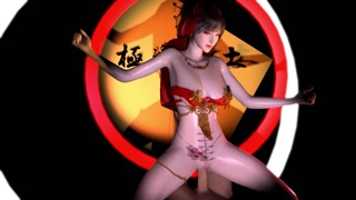 3D skinny Asian slut wearing sexy dress sitting on the big dick