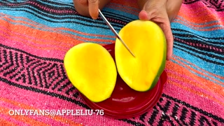 97 slut bikini milf jerk off husband on public beach and eats cum with mango OnlyFans @ Appleliu-76