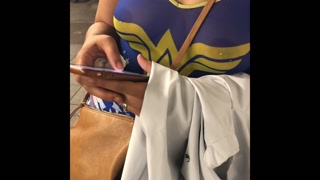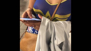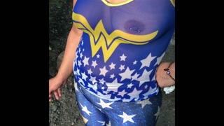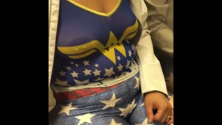 A day with wife in see through wonder women shirt and leggings