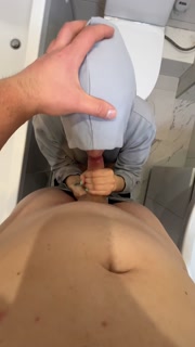 A friend's sexy mom followed me into the restroom, and made me in her mouth.