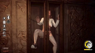 A girl in a plaid skirt and white blouse has anal sex with a monster in a transparent closet