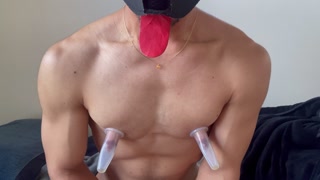 A guy who swallows a dildo with his ass.