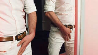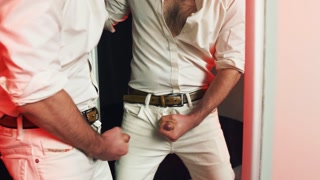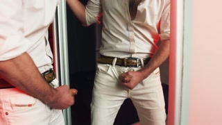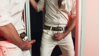 A handsome guy masturbates in front of a mirror. I finish loudly and fill the mirror with my sperm.
