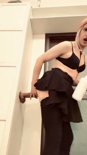 A huge dildo with a vibrator immediately stretches the elastic hole of a horny sissy Cum1ra