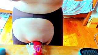 A perverted Japanese woman masturbates by shaking her hips on a fixed toy.