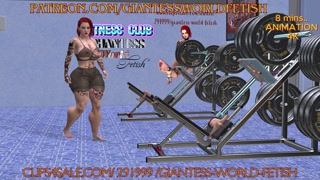 A powerful, muscular woman crushed and destroyed testicles, heads, and bodies of tiny slaves while d