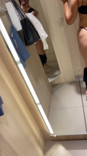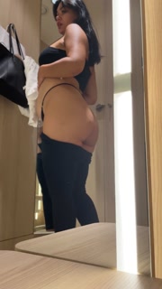 A pregnant girl shows Striptease in the fitting room of the shopping center