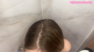 A quick blowjob in the toilet before your girlfriend sees us together