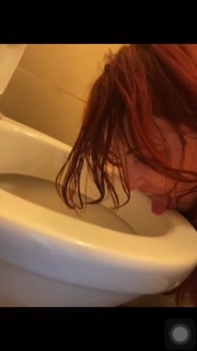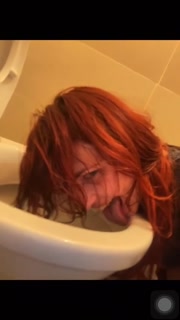 A webcam slut licks toilet, floor and shoes with a clamp on her tongue while show
