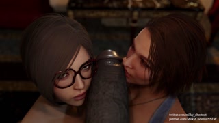 Ada and Jill Licking Mr. X's Massive Cock
