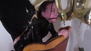 AnaKatana gets NYE Spanking in a latex bottomless dress! (HARDCORE BDSM & BONDAGE)