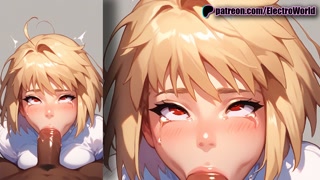 Arcueid Brunestud and her predatory look, gets a full throat of cum!
