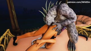 Argorian Drake and big tits Elf at the Beach House - romantic fuck with creampie