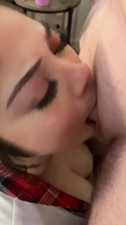 Asian teen deepthroat blowjob in schoolgirl outfit