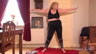 Aunt Judy's - Working Out with Busty Mature BBW Catherine & Her Big Natural Mature Tits