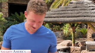 Ava Addams is My Friends Hot Mom for Naughty America all oiled up in a black bikini