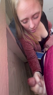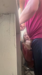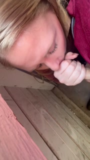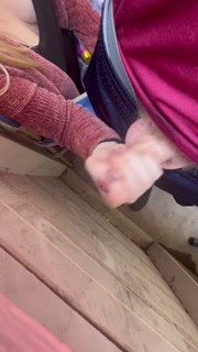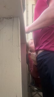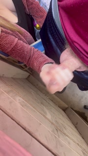 Babysitter jerks cock off on the patio during a busy day