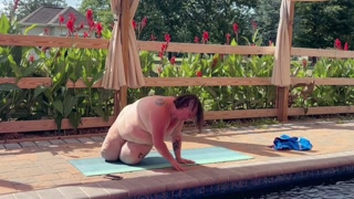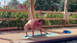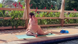 BBW Naked Yoga by the pool