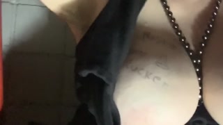 BBW Plays with Hairy Prolapsing Cunt Under a Public Staircase!