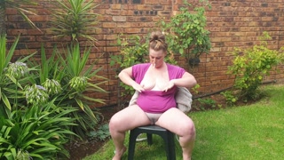 Bbw smoking with her big tits out and using herself as a human ashtray