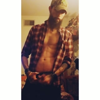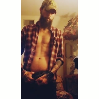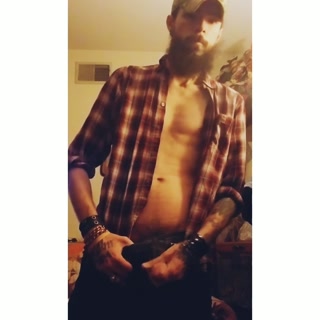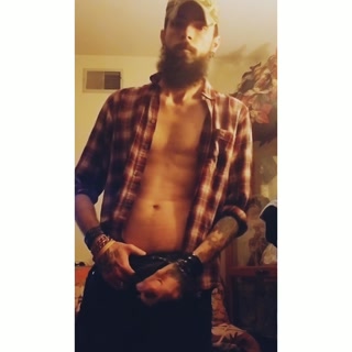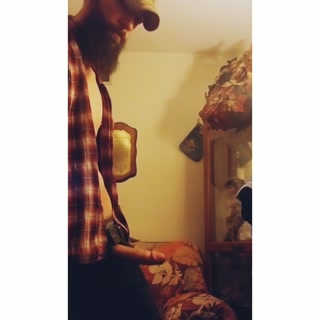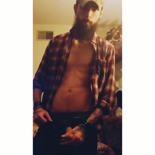 Bearded muscular guy jerking off cums and eats it