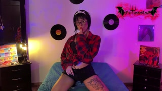 Beautiful girl pin up fucks her tight pussy with her huge dildo!