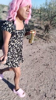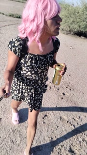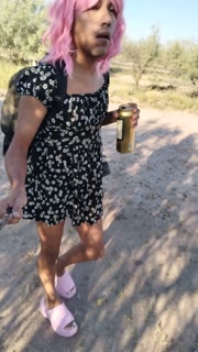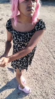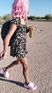 Beautiful ladyboy in mini dress walks in public wearing very hot sandals