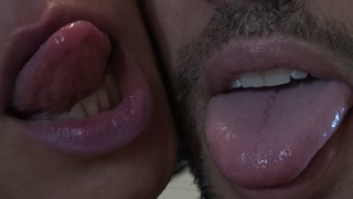 Belle-mère embrassant son beau-fils après qu'il ait éjaculé dans sa bouche