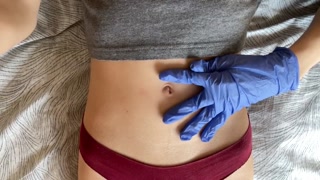 Belly button and medical gloves