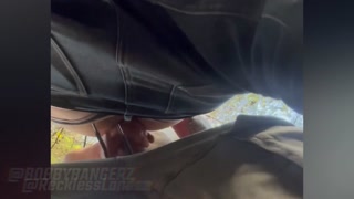 Bent over between some trees, he gets it rough and raw