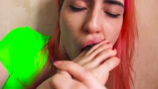 Best Footjob HD Close up She sucks her toes after I cum on her feet