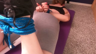 Big Ass Babe in Yoga Shorts Tied-Up and Made to Cum After Gym Class