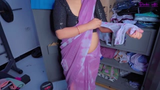 Big ass desi maid caught theft owner's panty then her hubby fucked her hairy pussy in doggystyle with Hindi Audio