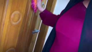 Big Ass Hot Stepmom Clean Stepson's Room wearing Abaya without pant naked ass & Pussy زوجة أب سعودية