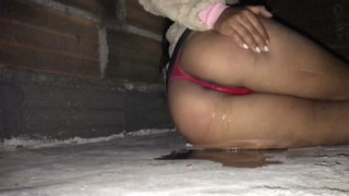 big ass teen pissing her panties in public💦