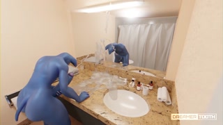 BIG DICKED ANTHRO BAT SPLATTERS HOTEL ROOM MIRROR WITH HIS CUM [FURRY]