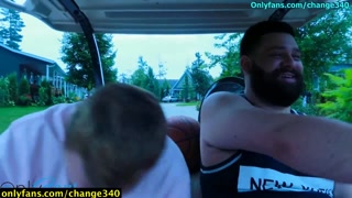 Big Grindr chub fucked by tattooed guy outside on Golf Cart