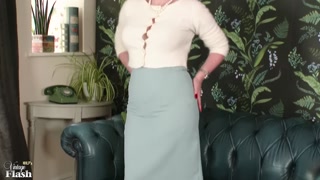 Big tits mature red head fingering pussy in seamed nylons and designer heels