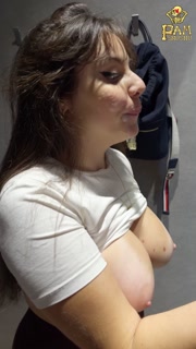 Big-Titted Babe Tries On Clothes in the Fitting Room and Ends Up Sucking Cock